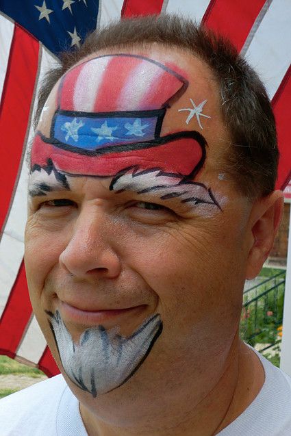 For a fun and character-driven approach, this 4th july face make-up transforms the forehead into Uncle Sam’s iconic top hat complete with a painted white goatee. This is a standout choice among 4th july facepaint ideas for community events or parades where a sense of humor is welcomed. While it requires a bit more detail for the hat’s structure, it provides a bold 4th july face paint statement that is sure to turn heads.