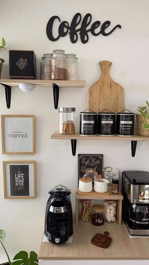 This post shows you the best ideas for decorating a coffee (tea or matcha) station in your home.