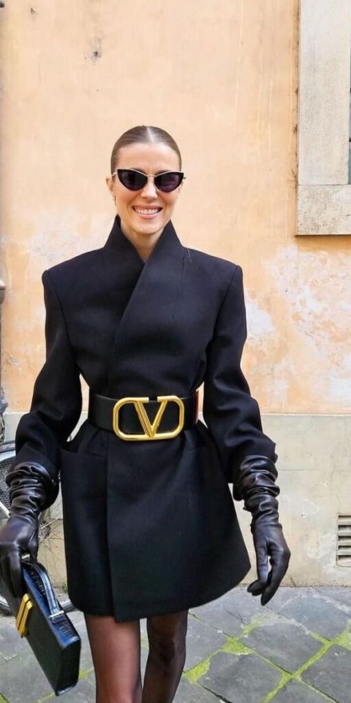 To achieve that authentic Glamoratti look, you have to move past the dainty, hidden belts of the past. This season is about making the accessories (and the shoulders!) the focal point. According to Natalie Dixon at Chic Style Collective: “a chunky belt is the simplest styling trick to make wide tailoring look intentional.” When you take an oversized, masculine-cut blazer and add a heavy belt, you create a sharp hourglass shape that demands attention.