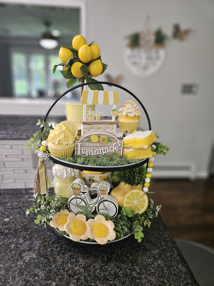 Tiered trays are the ultimate way to show off your personality and change up your decor for the seasons. Mix in some faux lemons, a cute mini sign, and a few sprigs of greenery to create a focal point that feels totally fresh and curated!