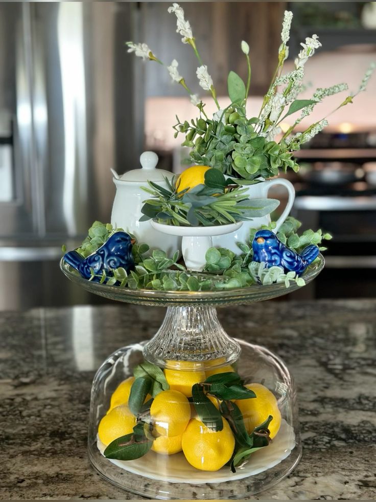 If you want something a little more sophisticated, a tiered glass stand filled with fresh lemons is the way to go. It adds height and a clean, modern aesthetic to any sideboard or buffet.