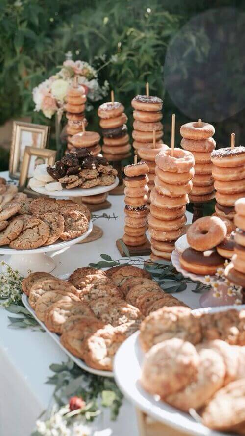 This setup is a classic crowd-pleaser that brings a touch of indulgence and elegance to any dessert table. It’s the perfect blend of fresh fruit and decadent treat, presented with a charming rustic flair.