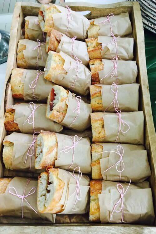 - Charming “Gift” Aesthetic: Wrapping the food with a simple bow transforms a basic sandwich into a little “gift” for the guest. It shows a high level of attention to detail and care without requiring expensive catering supplies.