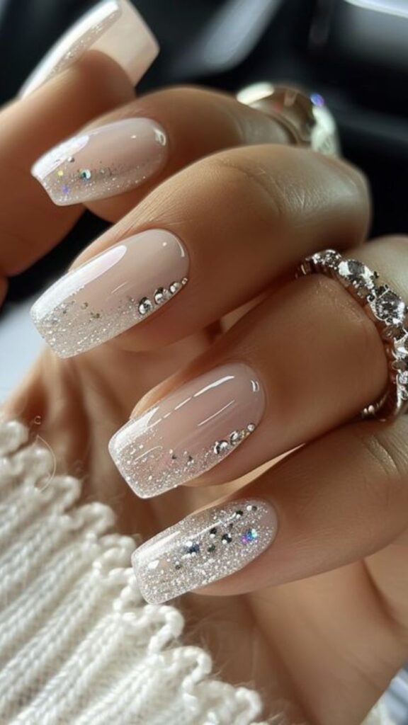 | Champagne Shimmer | Warm & Festive | Very fine gold or nude glitter that catches the light. |
