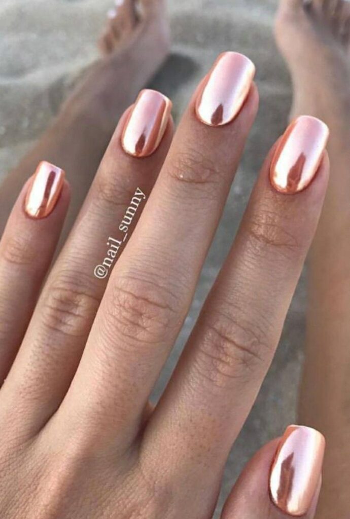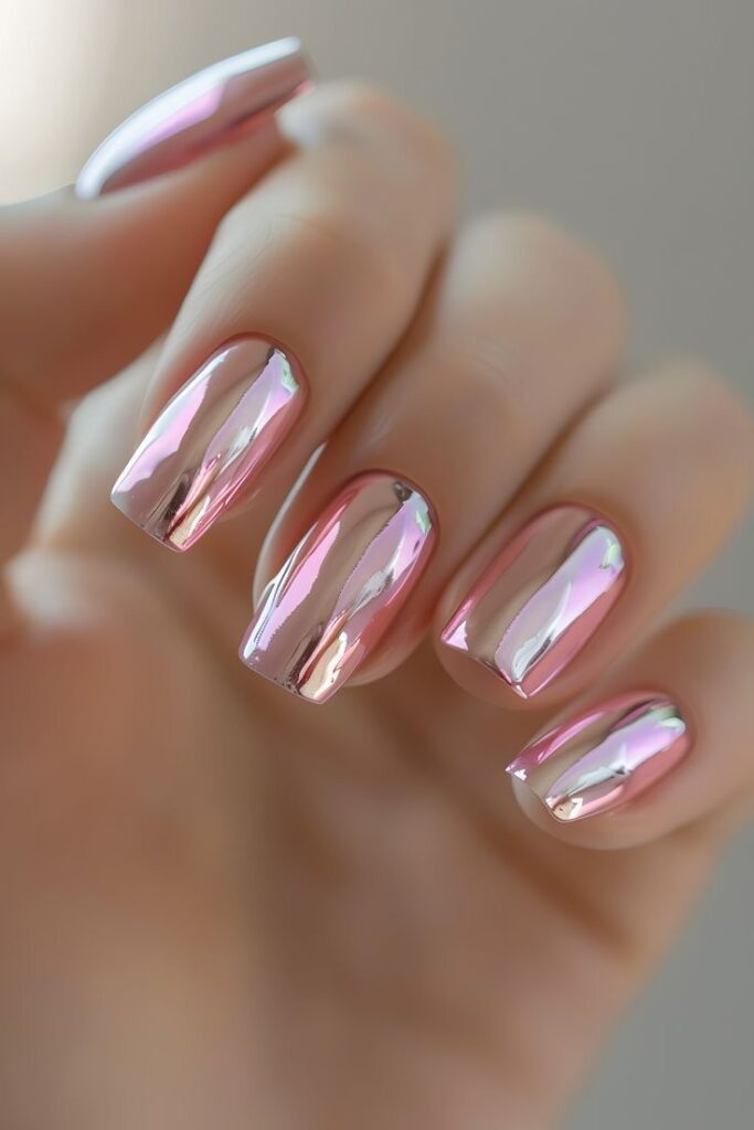 While standard chrome can look like liquid metal (think silver or gold), “wedding chrome” is typically more ethereal, often referred to as “Glazed Donut” or “Pearl Skin” nails. It provides a luminous glow that catches the light beautifully in wedding photos and videos.